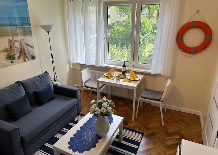 Bu daire Gdansk şehrinin Przymorze semtinde bulunmaktadır. Daireden birkaç metre uzaklıkta ücretsiz plaj bir plaj vardır. Misafirler, yemek için 650 metre uzaklıkta bulunan ve Europese mutfağından yemekleri sunan kafe Tomasz Deker adlı restoranı seçebilirler. Monte Cassino Caddesi'a arabayla hızlı bir şekilde ulaşabilirsiniz.
